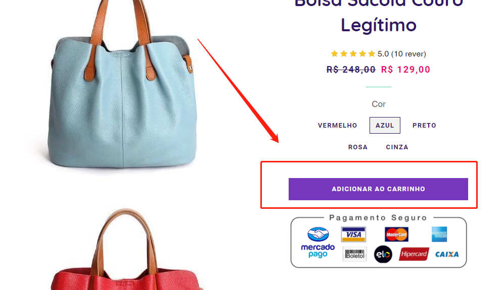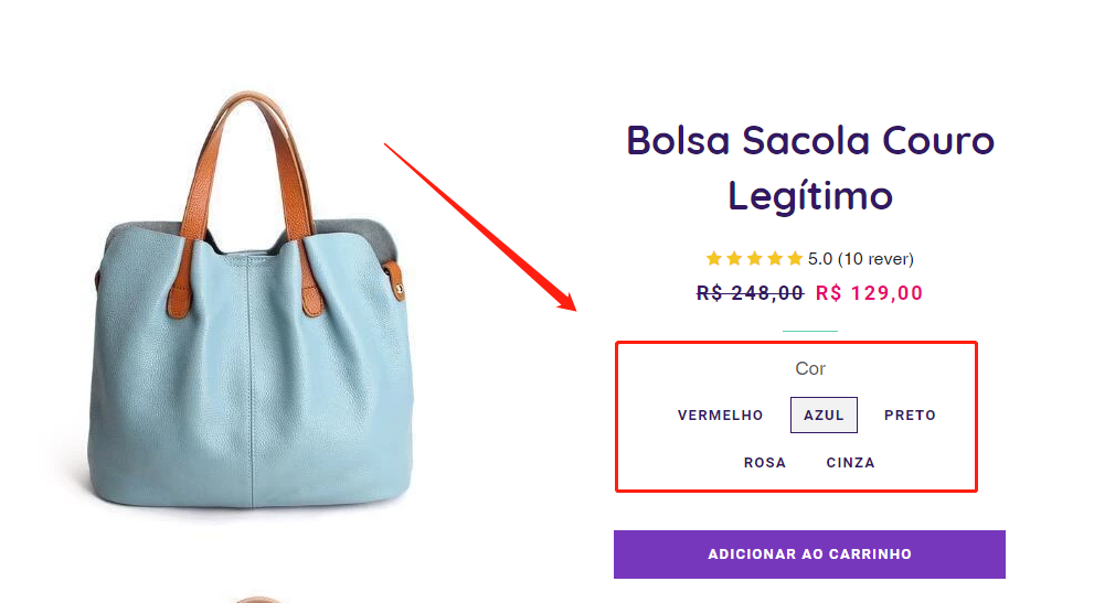 2- En la página del producto, seleccione el color/tamaño/modelo que desee;