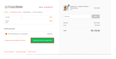7- En la página siguiente, compruebe toda la información, seleccione el método de envío y haga clic en "Ir al método de pago":