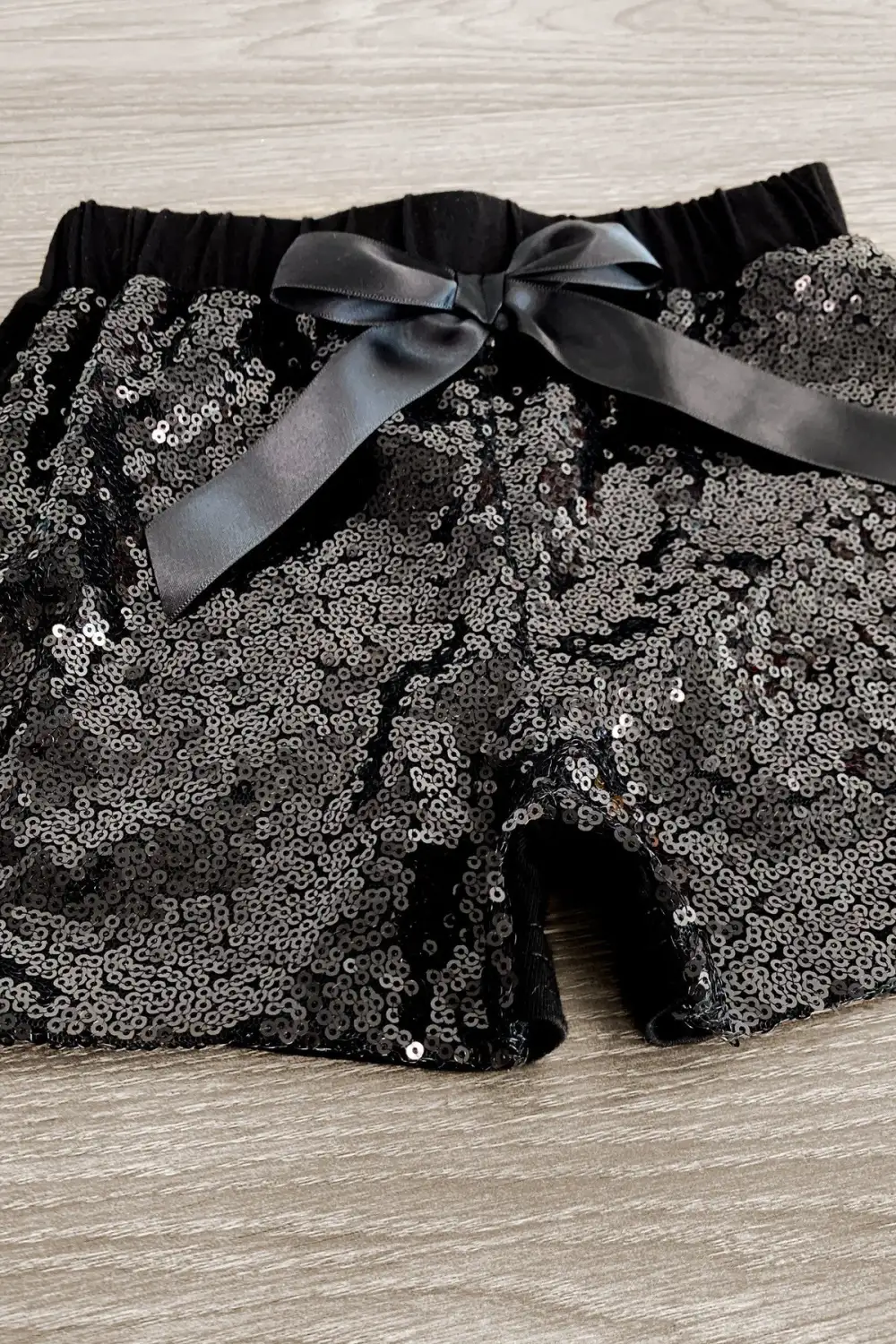 - Black shorts feature stretch waist & sequin design