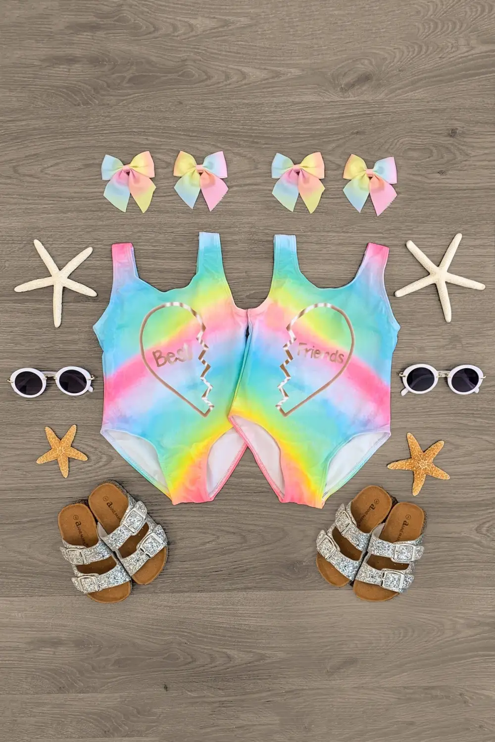 "Best Friends" Rainbow Heart BFF Swimsuit 33648