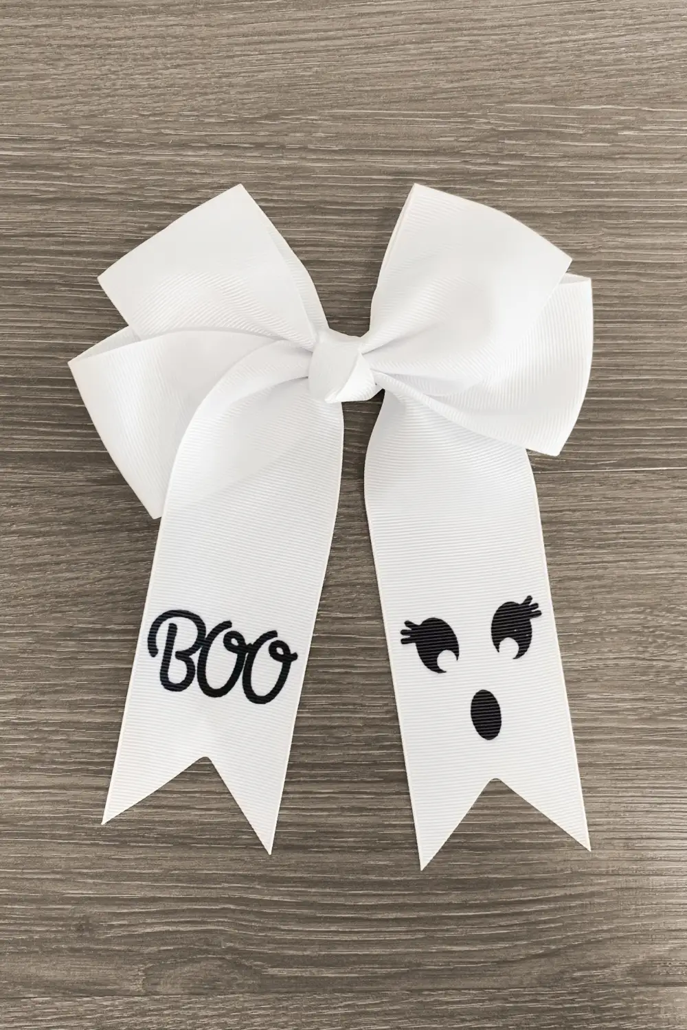 Add cute detail to her Fall hairstyles with this "Boo" White Ghost Bow. This bow makes a versatile piece in her hair accessories, and is easy to match with any outfit. The girly bow comes attached to an alligator clip that makes it easy to clip into any hairstyle for easy styling. She can wear it with a range of hairstyles, from pigtails to ponytails, for sweet and simple accessorizing.