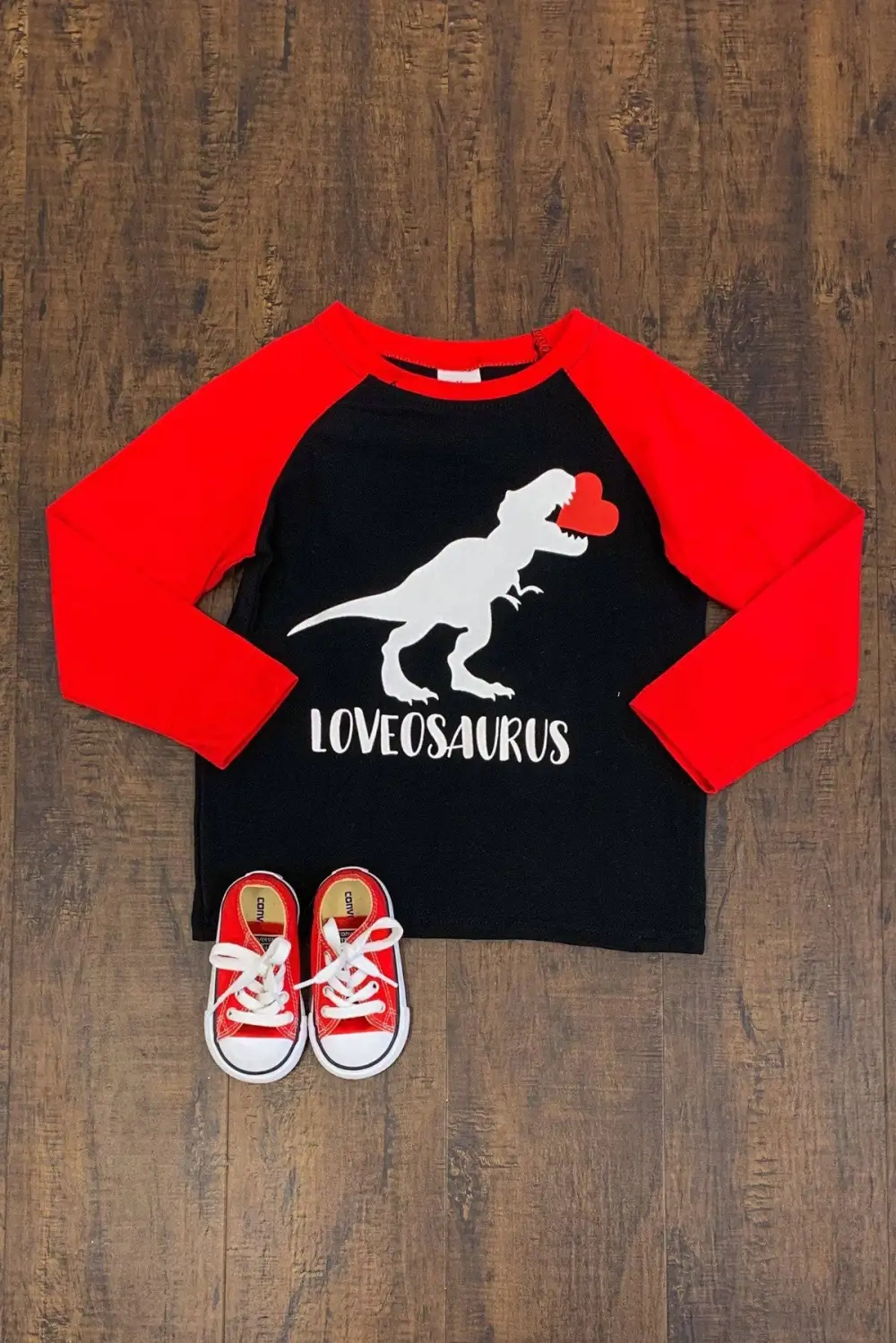Your little heartbreaker will love wearing this "Loveosaurus" Shirt. This top features long sleeves, and a fun dino design embossed on the front. In a fun red & black design, this top is made from soft and breathable fabric that will keep your little one comfy during all adventures. They can pair it with a variety of bottoms for the perfect look.