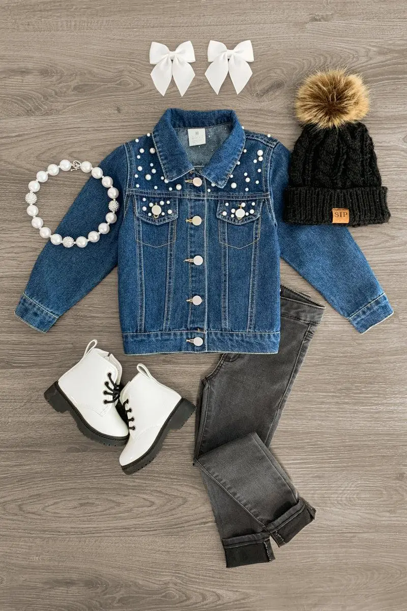 Your gal will love the comfort and cool style this "Wild Child" Pearl Denim Jacket brings to her cold weather wardrobe. Made from soft & breathable fabric, this girls' jacket feels soft against her skin, while the long sleeves offer her a cozy fit. Pair this jacket with our matching or for the perfect look!